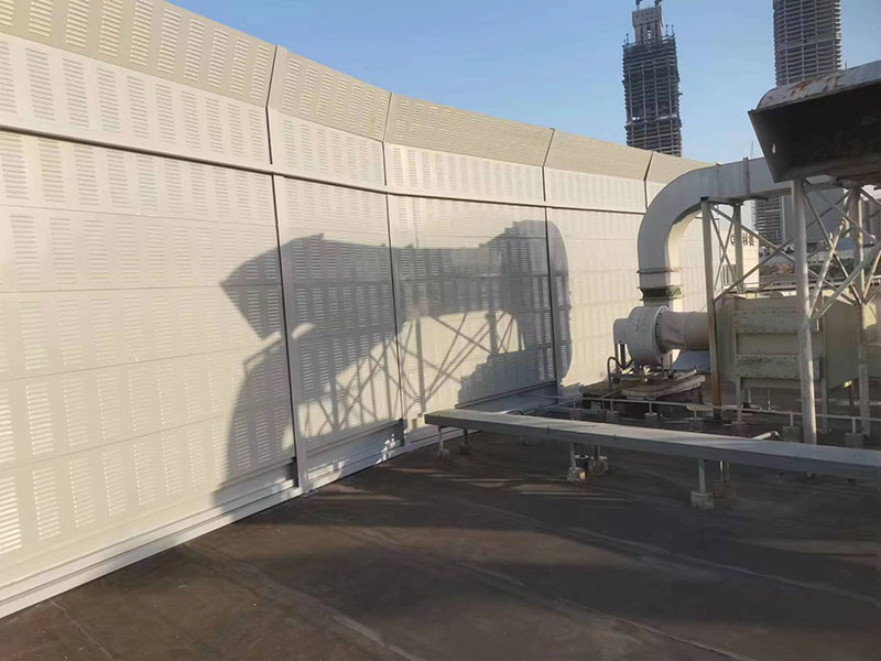折角型聲屏障主要用于公路、高速公路、冷卻塔噪音治理。分為純隔聲的反射型聲屏障,和吸聲與隔聲相結合的復合型聲屏障,后者是更為有效的隔聲方法。指的是為減輕行車噪聲對附近居民的影響而設置在鐵路和公路側旁的墻式構造物。折角型聲屏障的主要組成部件:基礎、立柱、屏體、固定件、密封件,有的還包括頂部結構。聲屏障屏體:鍍鋅板、背板、龍骨、玻璃棉、杜邦薄膜、正面沖孔率25%以上;聲屏障立柱:H型鋼、法蘭底盤、斜撐、內筋板、外筋板。