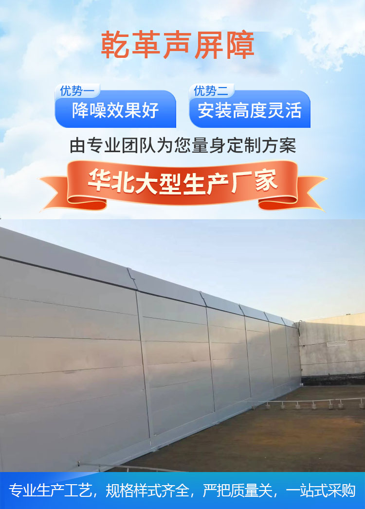 廠區隔音屏(聲屏障)主要由鋼結構立柱和吸隔聲屏板兩部分組成,立柱是隔音墻的主要受力構件,它通過螺栓或焊接固定在墻體或地面預埋鋼板上;吸隔聲板是主要的隔聲吸聲構件,它通過高強彈簧卡子將其固定在H型立柱槽內,形成隔音墻。