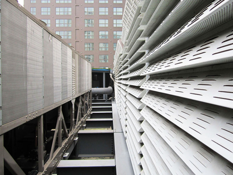 三角錐聲屏障降噪原理:三角錐聲屏障主要是面板做成三角錐的形狀,也可以叫做尖劈式聲屏障,面板的沖孔樣式有兩種,底部是微孔,尖劈部分是百葉孔,這樣可以使反射的聲波相互碰撞干擾而逐步衰減。